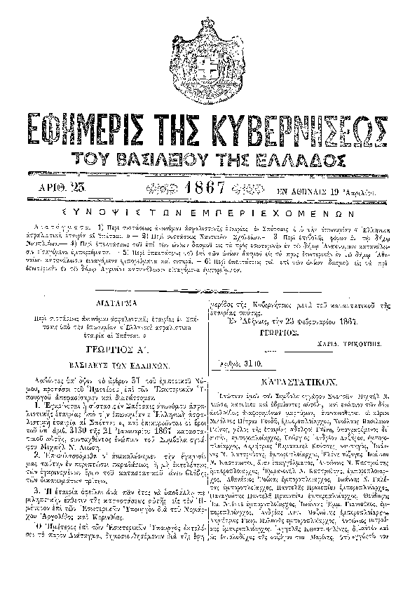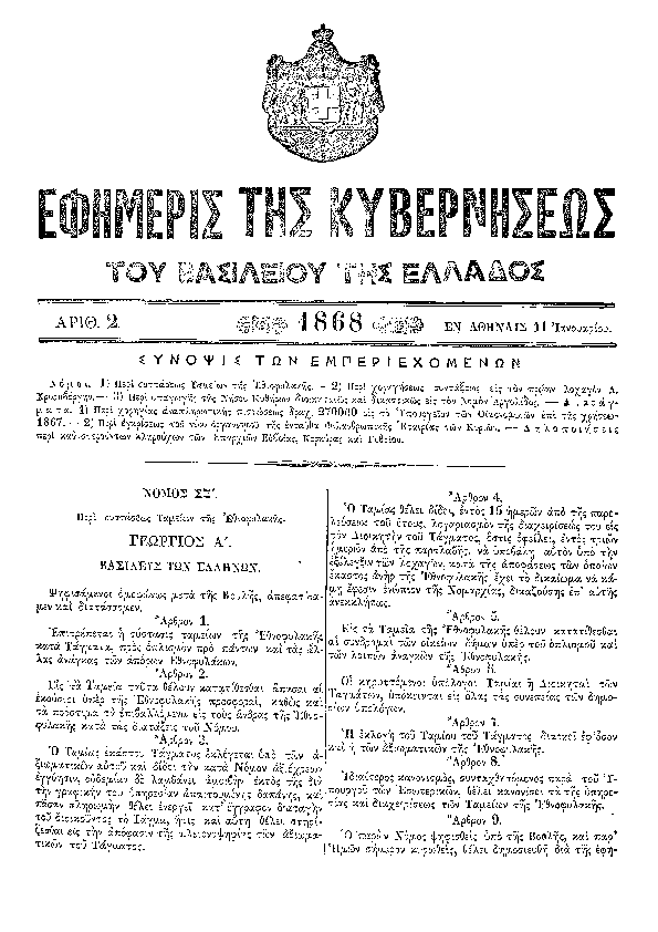 6. ΦΕΚ 2/A, 1868 http://www.et.gr/ Νόμος