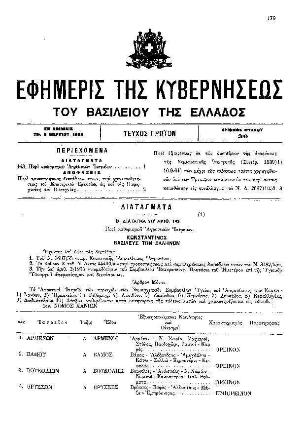 10. ΦΕΚ 36/A, 1965 http://www.et.gr/ Βασιλικό Διάταγμα