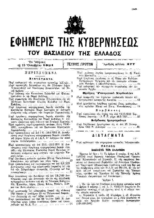 5. ΦΕΚ 34/A, 1952 http://www.et.gr/ Νόμος