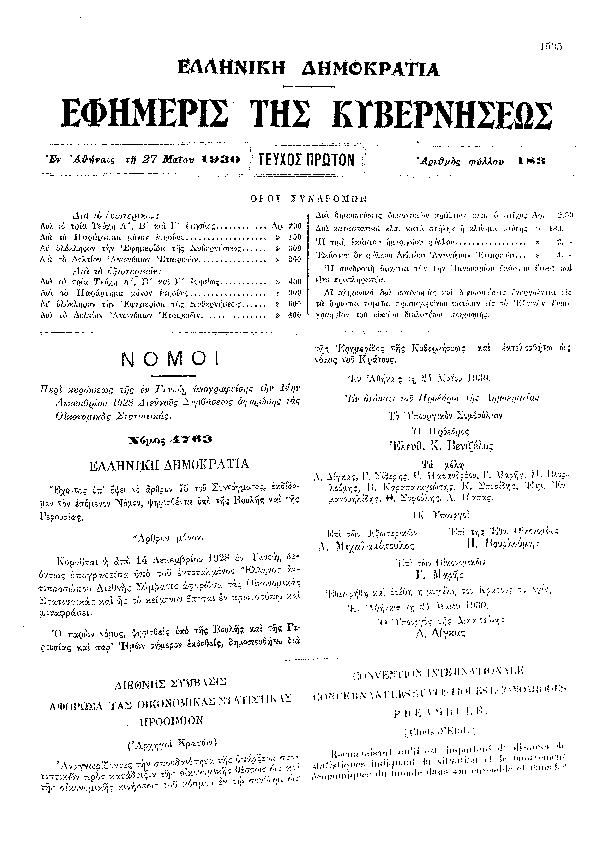 • ΠΕΡΙ ΚΥΡΩΣΕΩΣ ΤΗΣ ΕΝ ΓΕΝΕΥΗ ΥΠΟΓΡΑΦΕΙΣΗΣ ΤΗΝ 14ΗΝ ΔΕΚΕΜΒΡΙΟΥ 1928 ΔΙΕΘΝΟΥΣ ΣΥΜΒΑΣΕΩΣ ΑΦΟΡΩΣΗΣ ΤΑΣ ΟΙΚΟΝΟΜΙΚΑΣ ΣΤΑΤΙΣΤΙΚΑΣ.