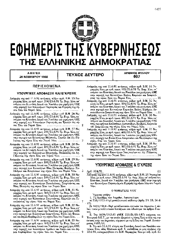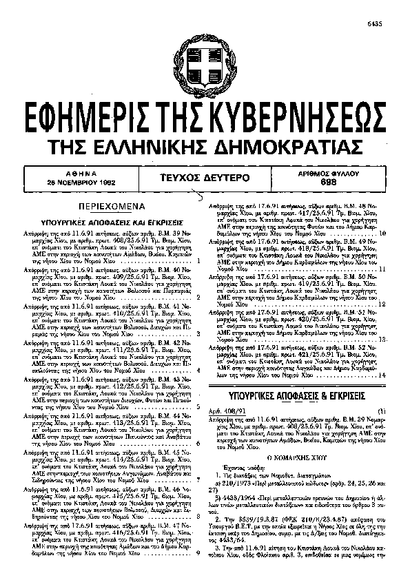 Αναζήτηση στα ΦΕΚ για:  Νήσος