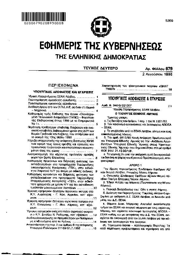Αναζήτηση στα ΦΕΚ για:  Νήσος