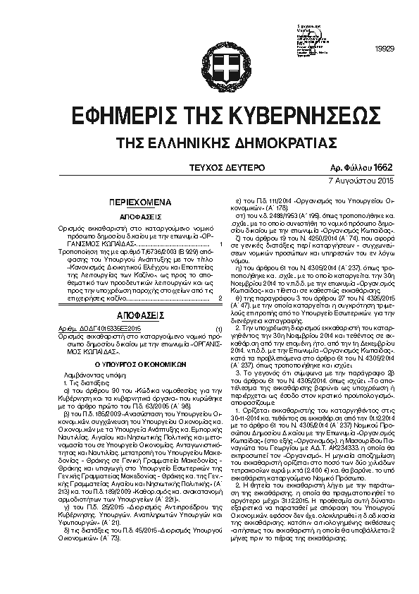 Αναζήτηση στα ΦΕΚ για:  ΟΡΓΑΝΙΣΜΟΣ ΚΩΠΑΊΔΑΣ