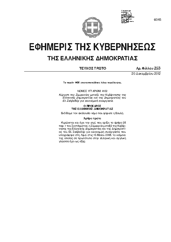 ΚΥΡΩΣΗ ΤΗΣ ΣΥΜΦΩΝΙΑΣ ΜΕΤΑΞΥ ΤΗΣ ΚΥΒΕΡΝΗΣΗΣ ΤΗΣ ΕΛΛΗΝΙΚΗΣ ΔΗΜΟΚΡΑΤΙΑΣ ΚΑΙ ΤΗΣ ΚΥΒΕΡΝΗΣΗΣ ΤΗΣ ΟΜΟΣΠΟΝΔΙΑΚΗΣ ΔΗΜΟΚΡΑΤΙΑΣ ΤΗΣ ΒΡΑΖΙΛΙΑΣ ΓΙΑ ΤΗΝ ΟΙΚΟΝΟΜΙΚΗ, ΕΠΙΣΤΗΜΟΝΙΚΗ ΚΑΙ ΤΕΧΝΟΛΟΓΙΚΗ ΣΥΝΕΡΓΑΣΙΑ ΚΑΙ ΤΗ ΣΥΝΕΡΓΑΣΙΑ ΣΕ ΘΕΜΑΤΑ ΚΑΙΝΟΤΟΜΙΑΣ.