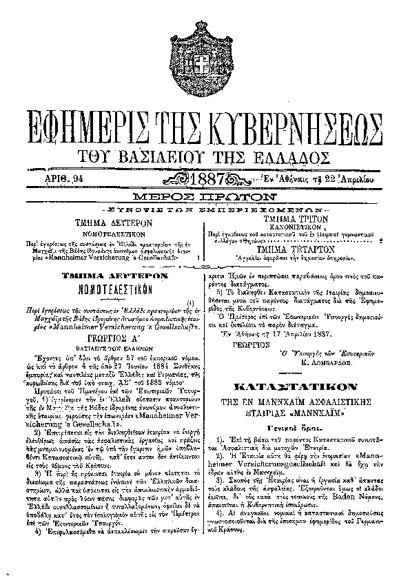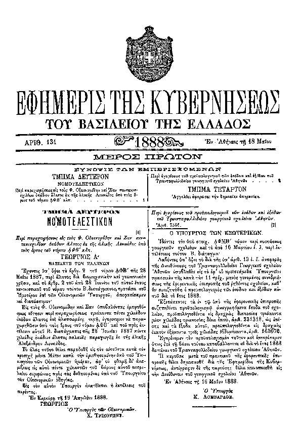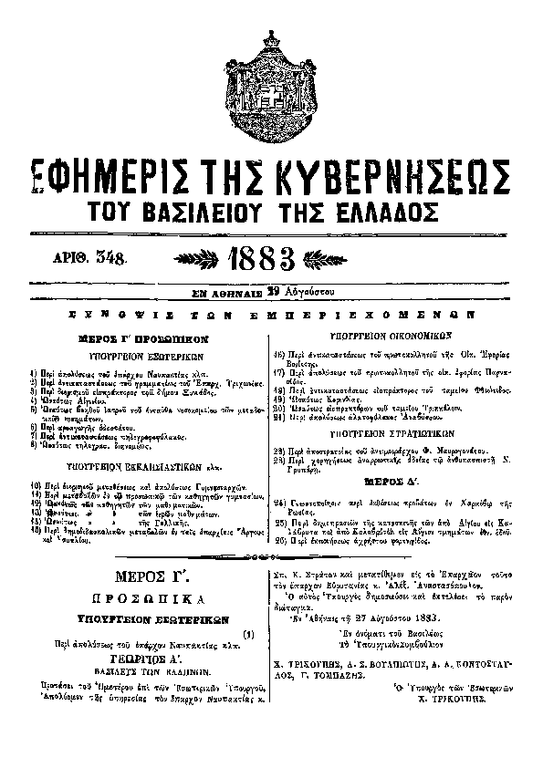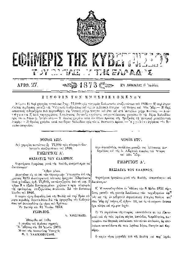 1. ΦΕΚ 27/A, 1873 http://www.et.gr/