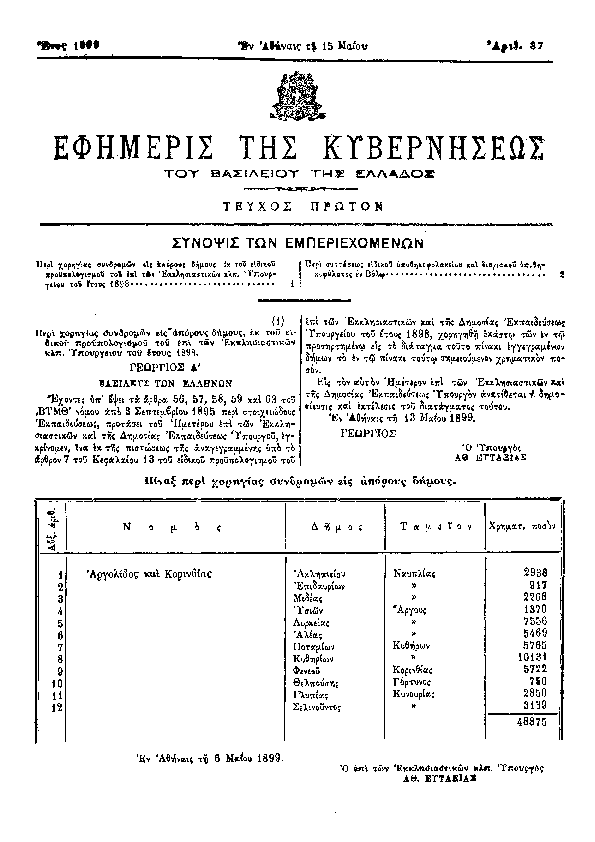 10. ΦΕΚ 105/A, 1899 http://www.et.gr/