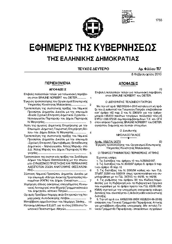 Αναζήτηση στα ΦΕΚ για:  ΠΑΥΛΟΣ»