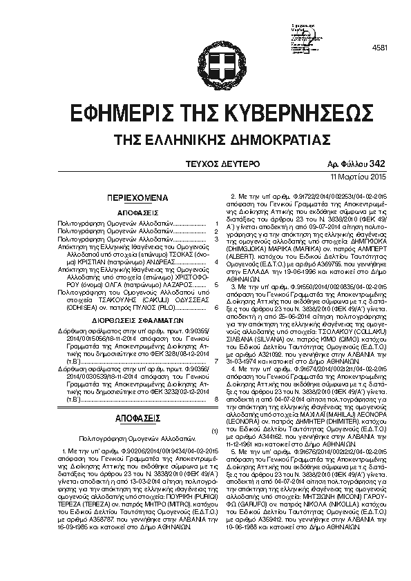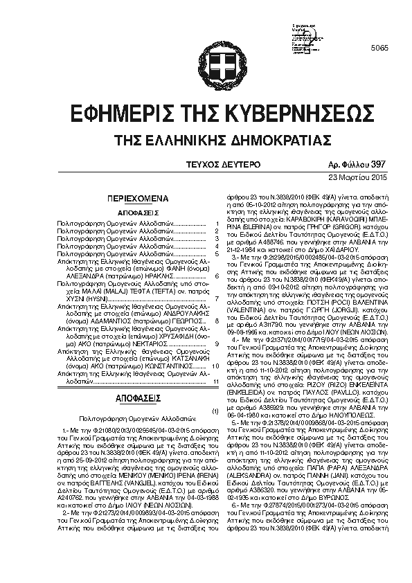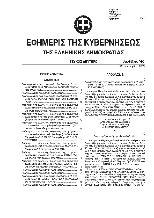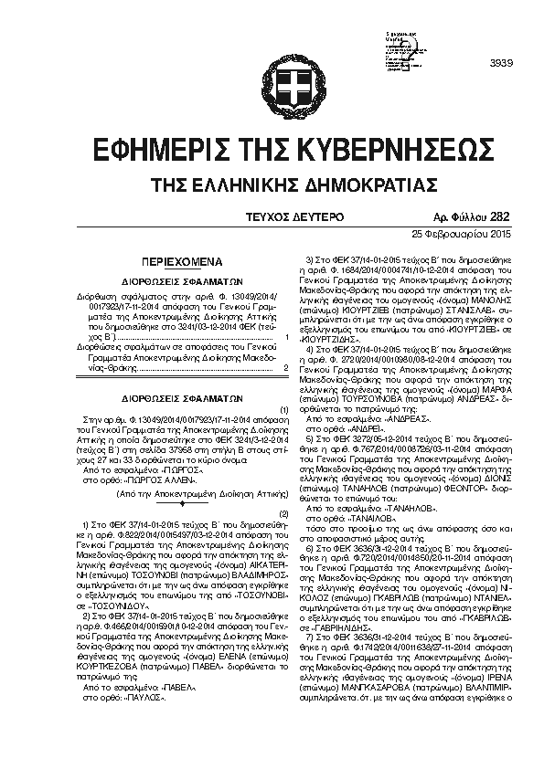 Αναζήτηση στα ΦΕΚ για:  ΠΑΥΛΟΣ»