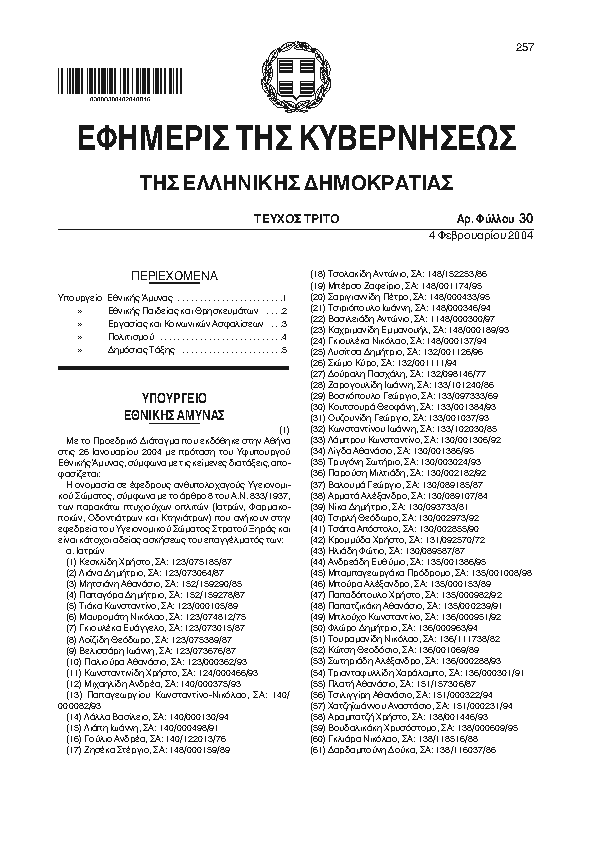 Αναζήτηση στα ΦΕΚ για:  ΠΑΥΛΟΣ»