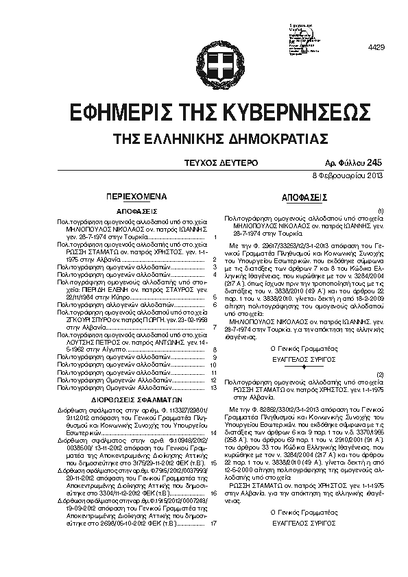 Αναζήτηση στα ΦΕΚ για:  ΠΑΥΛΟΣ»
