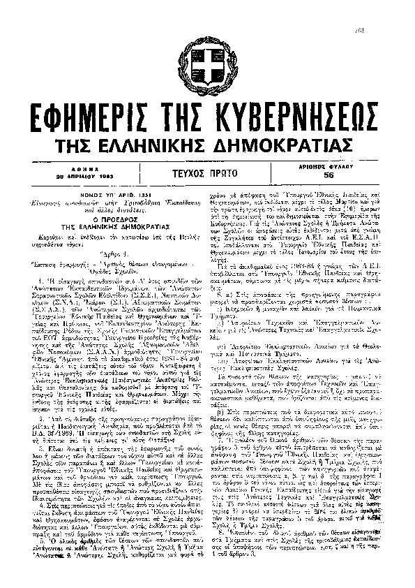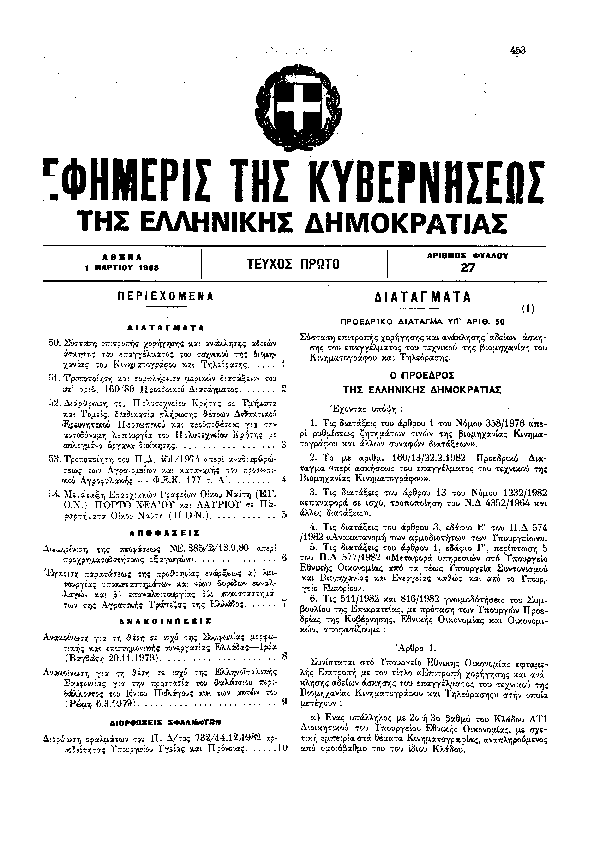 ΤΡΟΠΟΠΟΙΗΣΗ ΤΟΥ ΠΡ. ΔΙΑΤΑΓΜΑΤΟΣ 657/|1978 «ΠΕΡΙ ΚΥΡΩΣΕΩΣ ΤΟΥ ΚΑΝΟΝΙΣΜΟΥ ΣΧΟΛΗΣ ΑΞΙΩΜΑΤΙΚΩΝ ΧΩΡΟΦΥΛΑΚΗΣ» ΚΑΙ ΤΟΥ ΠΡΟΕΔΡΙΚΟΥ ΔΙΑΤΑΓΜΑΤΟΣ 450/1974 «ΠΕΡΙ ΚΥΡΩΣΕΩΣ ΤΟΥ ΚΑΝΟΝΙΣΜΟΥ ΣΧΟΛΗΣ ΟΠΛΙΤΩΝ ΧΩΡΟΦΥΛΑΚΗΣ».