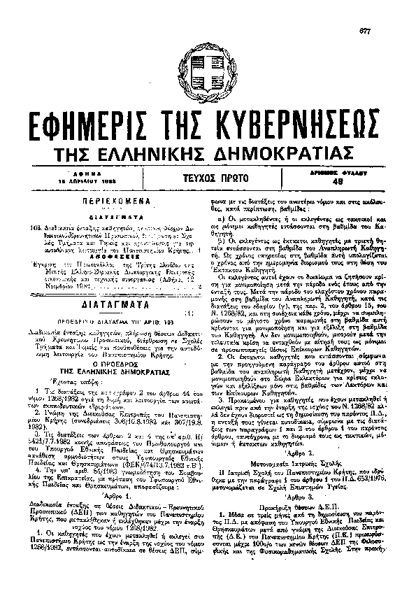 ΔΙΑΔΙΚΑΣΙΑ ΕΝΤΑΞΗΣ ΚΑΘΗΓΗΤΩΝ, ΠΛΗΡΩΣΗ ΘΕΣΕΩΝ ΔΙΔΑΚΤΙΚΟΥ ΕΡΕΥΝΗΤΙΚΟΥ ΠΡΟΣΩΠΙΚΟΥ, ΔΙΑΡΘΡΩΣΗ ΣΕ ΣΧΟΛΕΣ ΤΜΗΜΑΤΑ ΚΑΙ ΤΟΜΕΙΣ ΚΑΙ ΠΡΟΫΠΟΘΕΣΕΙΣ ΓΙΑ ΤΗΝ ΑΥΤΟΔΥΝΑΜΗ ΛΕΙΤΟΥΡΓΙΑ ΤΟΥ ΠΑΝΕΠΙΣΤΗΜΙΟΥ ΚΡΗΤΗΣ.