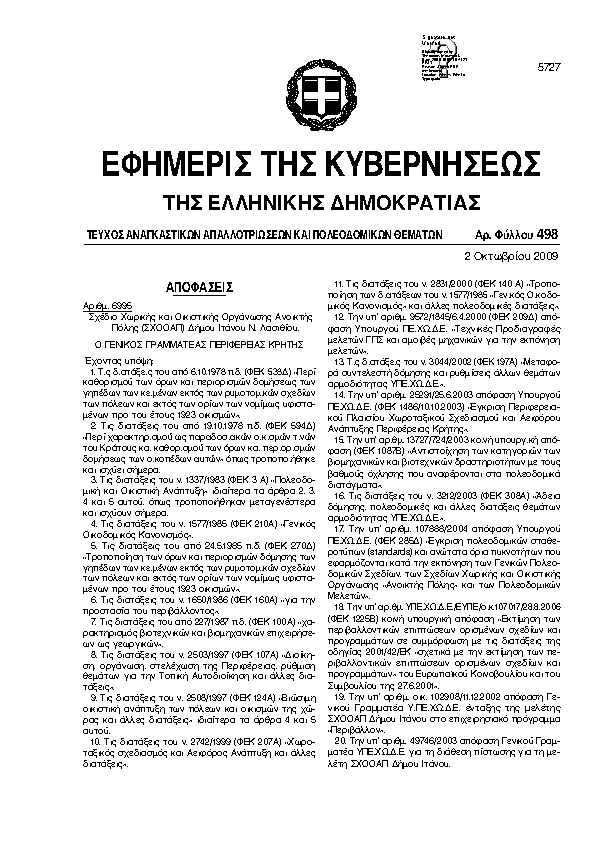 Αναζήτηση στα ΦΕΚ για:  Ποιότητας Ζωής