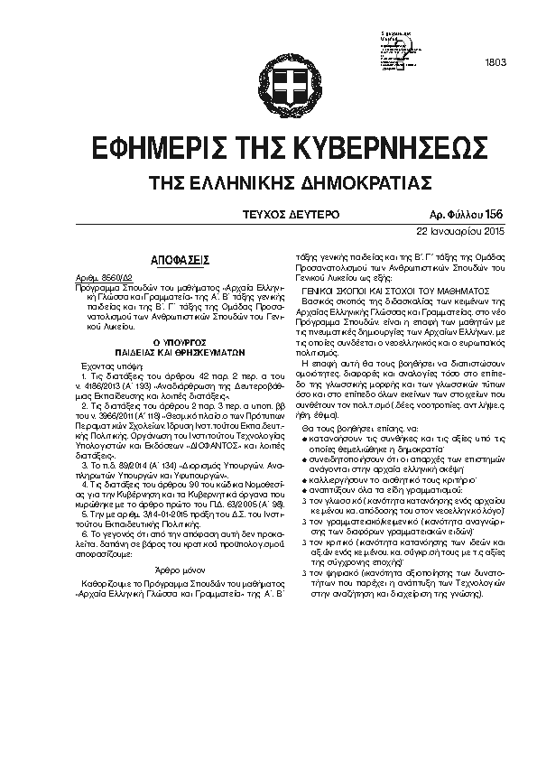 Αναζήτηση στα ΦΕΚ για:  Ποιότητας Ζωής