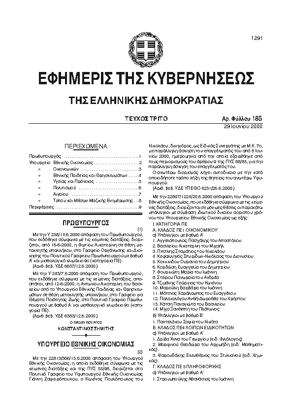 Αναζήτηση στα ΦΕΚ για:  Ποιότητας Ζωής