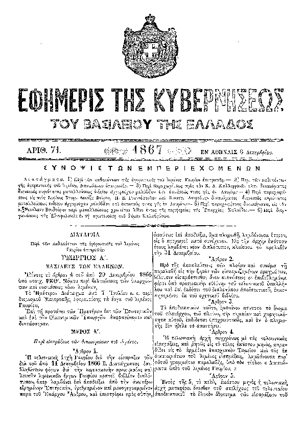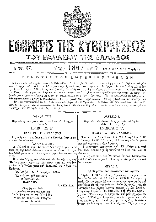 9. ΦΕΚ 67/A, 1867 http://www.et.gr/