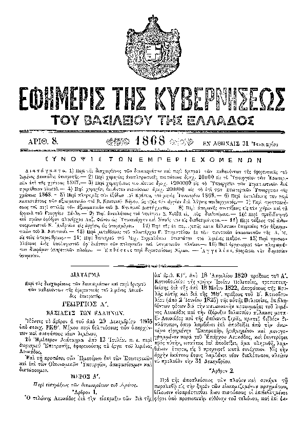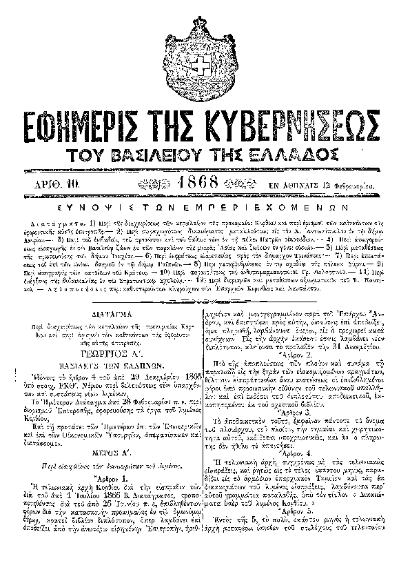 4. ΦΕΚ 11/A, 1868 http://www.et.gr/