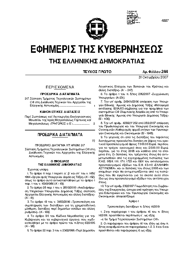 10. ΦΕΚ 244/A, 2007 http://www.et.gr/