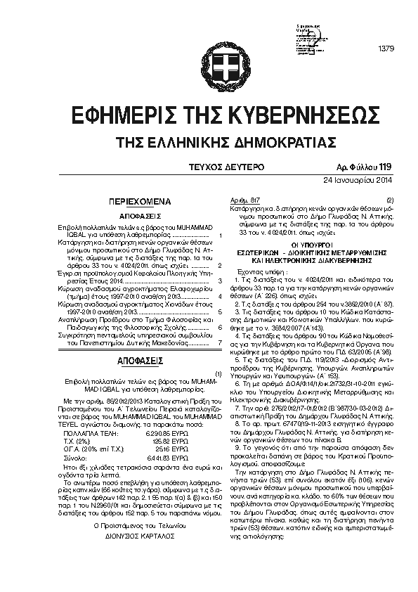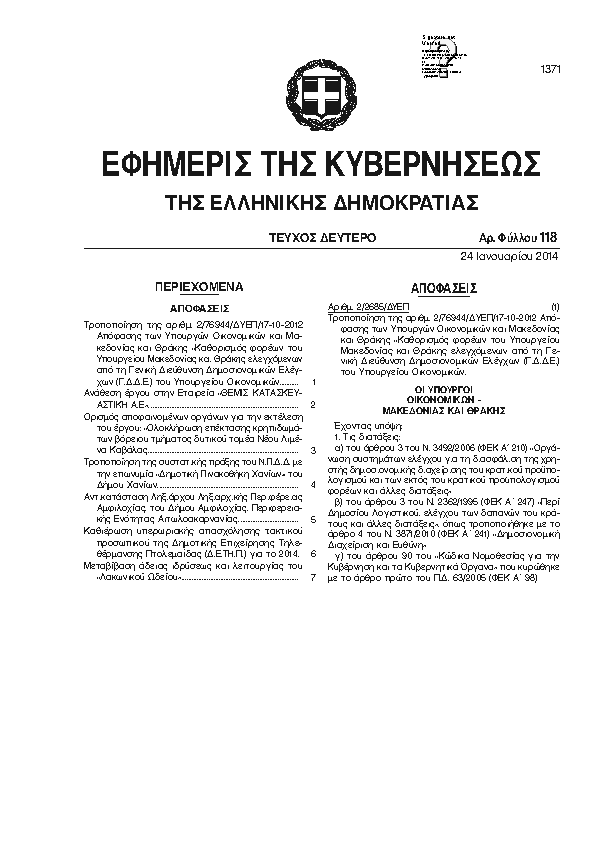 Αναζήτηση στα ΦΕΚ για:  Προϋπολογισμός