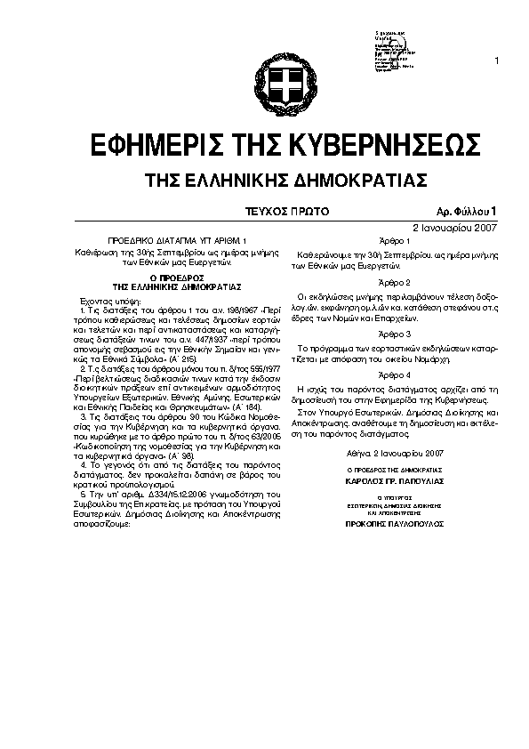 1. ΦΕΚ 1/A, 2007 http://www.et.gr/