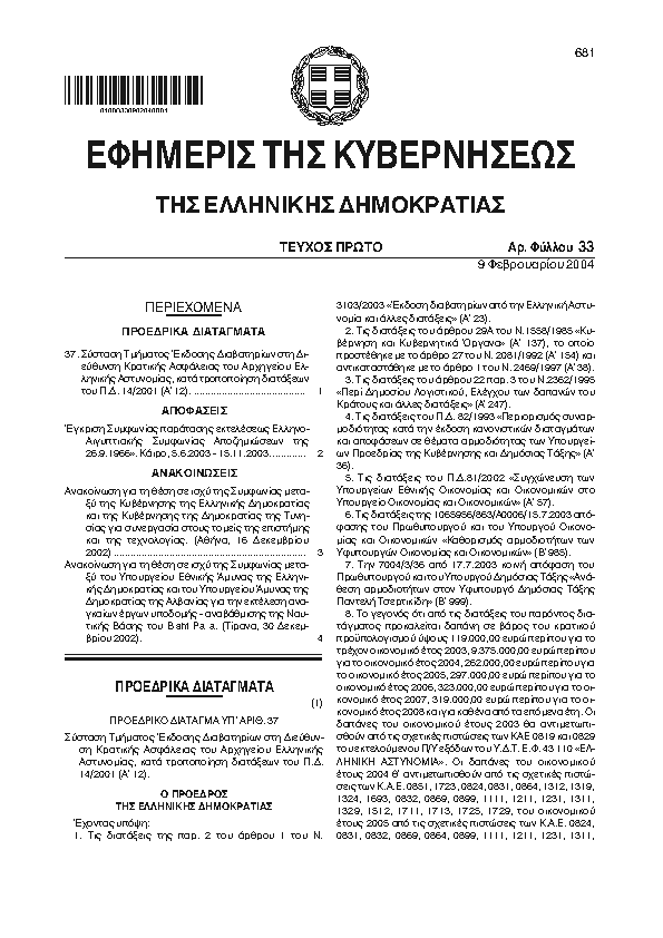ΠΡΟΣΑΡΜΟΓΗ ΤΗΣ ΕΛΛΗΝΙΚΗΣ ΝΟΜΟΘΕΣΙΑΣ ΠΡΟΣ ΤΙΣ ΔΙΑΤΑΞΕΙΣ ΤΗΣ ΟΔΗΓΙΑΣ 2002/30/ΕΚ ΤΟΥ ΕΥΡΩΠΑΪΚΟΥ ΚΟΙΝΟΒΟΥΛΙΟΥ ΚΑΙ ΤΟΥ ΣΥΜΒΟΥΛΙΟΥ ΤΗΣ 26/3/2002 ΠΕΡΙ ΚΑΘΙΕΡΩΣΗΣ ΚΑΝΟΝΩΝ ΚΑΙ ΔΙΑΔΙΚΑΣΙΩΝ ΓΙΑ ΤΗΝ ΘΕΣΠΙΣΗ ΠΕΡΙΟΡΙΣΜΩΝ ΛΕΙΤΟΥΡΓΙΑΣ ΣΕ ΣΥΝΑΡΤΗΣΗ ΜΕ ΤΟΝ ΠΡΟΚΑΛΟΥΜΕΝ