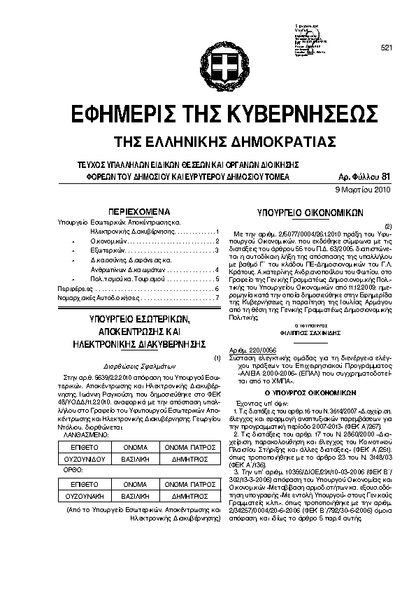 Αναζήτηση στα ΦΕΚ για:  Ρυθμίσεων