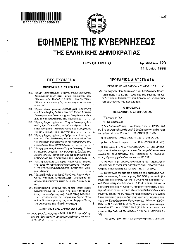 5. ΦΕΚ 161/A, 1998 http://www.et.gr/ Προεδρικό Διάταγμα