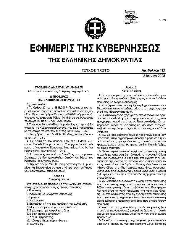 4. ΦΕΚ 113/A, 2008 http://www.et.gr/ Προεδρικό Διάταγμα