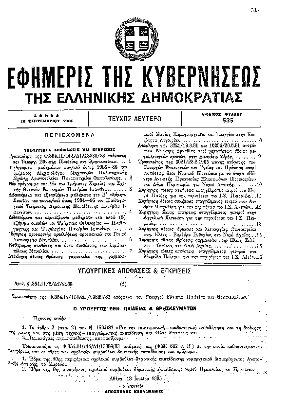 Αναζήτηση στα ΦΕΚ για:  Σχολική