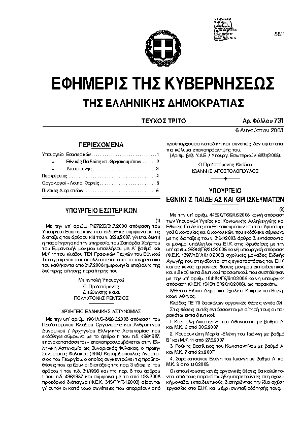 Αναζήτηση στα ΦΕΚ για:  Σχολική