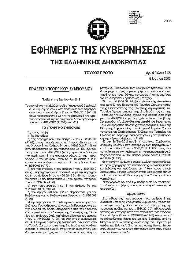 ΚΥΡΩΣΗ ΤΗΣ ΑΠΟ 31.10.2012 ΠΡΩΤΗΣ ΤΡΟΠΟΠΟΙΗΤΙΚΗΣ ΣΥΜΒΑΣΗΣ ΜΕΤΑΞΥ ΤΟΥ ΕΛΛΗΝΙΚΟΥ ΔΗΜΟΣΙΟΥ ΚΑΙ ΤΩΝ ΑΝΑΔΟΧΩΝ ΕΤΑΙΡΙΩΝ ΚΑVALA OIL ΑΝΩΝΥΜΗ ΕΤΑΙΡΙΑ ΚΑΙ ENERGEAN OIL & GAS-ΕΝΕΡΓΕΙΑΚΗ ΑΙΓΑΙΟΥ ΑΝΩΝΥΜΗ ΕΤΑΙΡΙΑ ΕΡΕΥΝΑΣ ΚΑΙ ΠΑΡΑΓΩΓΗΣ ΥΔΡΟΓΟΝΑΝΘΡΑΚΩΝ ΚΑΙ ΤΩΝ ΠΑΡΑΡΤΗΜΑΤΩΝ Ι ΚΑΙ II ΑΥΤΗΣ