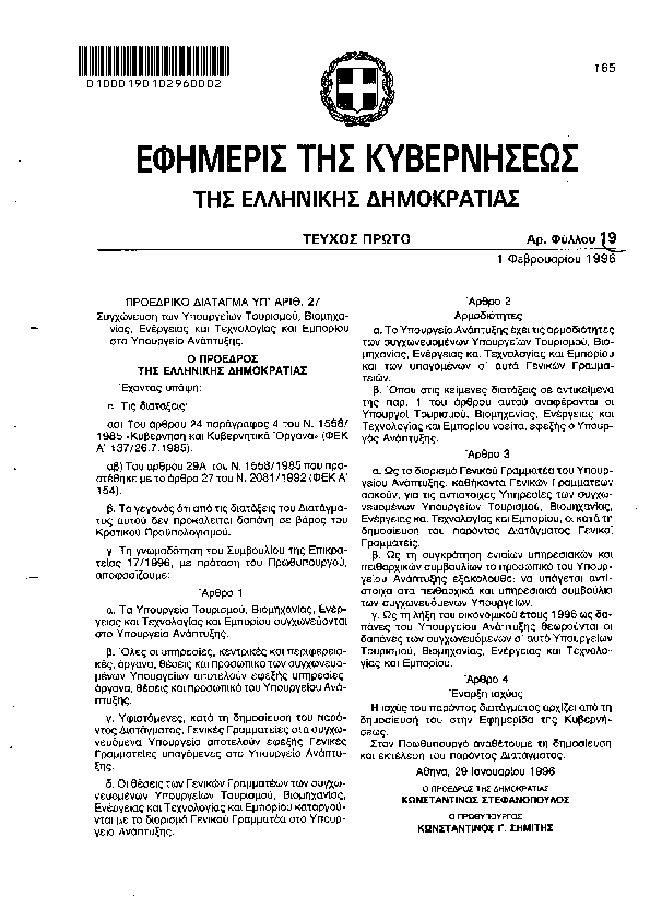10. ΦΕΚ 19/A, 1996 http://www.et.gr/