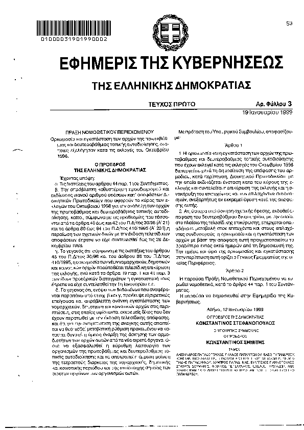 2. ΦΕΚ 2/A, 1999 http://www.et.gr/ Προεδρικό Διάταγμα