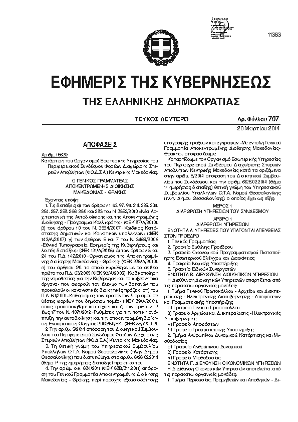 • ΝΟΜΟΣ ΥΠ' ΑΡΙΘ.4555 ΜΕΤΑΡΡΥΘΜΙΣΗ ΤΟΥ ΘΕΣΜΙΚΟΥ ΠΛΑΙΣΙΟΥ ΤΗΣ ΤΟΠΙΚΗΣ ΑΥΤΟΔΙΟΙΚΗΣΗΣ - ΕΜΒΑΘΥΝΣΗ ΤΗΣ ΔΗΜΟΚΡΑΤΙΑΣ - ΕΝΙΣΧΥΣΗ ΤΗΣ ΣΥΜΜΕΤΟΧΗΣ - ΒΕΛΤΙΩΣΗ ΤΗΣ ΟΙΚΟΝΟΜΙΚΗΣ ΚΑΙ ΑΝΑΠΤΥΞΙΑΚΗΣ ΛΕΙΤΟΥΡΓΙΑΣ ΤΩΝ Ο. Τ. Α. [ΠΡΟΓΡΑΜΜΑ «ΚΛΕΙΣΘΕΝΗΣ Ι»] - ΡΥΘΜΙΣΕΙΣ ΓΙΑ ΤΟΝ ΕΚΣΥΓΧΡΟΝΙΣΜΟ ΤΟΥ ΠΛΑΙΣΙΟΥ ΟΡΓΑΝΩΣΗΣ ΚΑΙ ΛΕΙΤΟΥΡΓΙΑΣ ΤΩΝ ΦΟΔΣΑ - ΡΥΘΜΙΣΕΙΣ ΓΙΑ ΤΗΝ ΑΠΟΤΕΛΕΣΜΑΤΙΚΟΤΕΡΗ, ΤΑΧΥΤΕΡΗ ΚΑΙ ΕΝΙΑΙΑ ΑΣΚΗΣΗ ΤΩΝ ΑΡΜΟΔΙΟΤΗΤΩΝ ΣΧΕΤΙΚΑ ΜΕ ΤΗΝ ΑΠΟΝΟΜΗ ΙΘΑΓΕΝΕΙΑΣ ΚΑΙ ΤΗΝ ΠΟΛΙΤΟΓΡΑΦΗΣΗ - ΛΟΙΠΕΣ ΔΙΑΤΑΞΕΙΣ ΑΡΜΟΔΙΟΤΗΤΑΣ ΥΠΟΥΡΓΕΙΟΥ ΕΣΩΤΕΡΙΚΩΝ ΚΑΙ ΑΛΛΕΣ ΔΙΑΤΑΞΕΙΣ