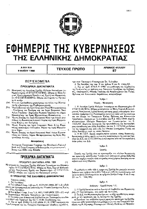 ΜΕΤΑΤΡΟΠΗ ΤΗΣ ΑΝΩΤΕΡΑΣ ΣΧΟΛΗΣ ΑΔΕΛΦΩΝ ΝΟΣΟΚΟΜΩΝ ΤΟΥ ΘΕΡΑΠΕΥΤΗΡΙΟΥ «Ο ΕΥΑΓΓΕΛΙΣΜΟΣ» ΑΘΗΝΑΣ ΣΕ ΜΕΣΗ ΤΕΧΝΙΚΗ ΕΠΑΓΓΕΛΜΑΤΙΚΗ ΝΟΣΗΛΕΥΤΙΚΗ ΣΧΟΛΗ ΣΤΟ ΘΕΡΑΠΕΥΤΗΡΙΟ «Ο ΕΥΑΓΓΕΛΙΣΜΟΣ» ΑΘΗΝΑΣ ΚΑΙ ΕΓΚΡΙΣΗ ΤΟΥ ΟΡΓΑΝΙΣΜΟΥ ΑΥΤΗΣ».