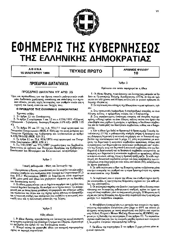 ΟΡΟΙ ΚΑΙ ΠΡΟΫΠΟΘΕΣΕΙΣ ΓΙΑ ΤΗΝ ΙΔΡΥΣΗ ΤΟΠΙΚΩΝ ΡΑΔΙΟΦΩΝΙΚΩΝ ΣΤΑΘΜΩΝ, ΔΙΑΔΙΚΑΣΙΑ ΧΟΡΗΓΗΣΗΣ, ΑΝΑΝΕΩΣΗΣ ΚΑΙ ΑΝΑΚΛΗΣΗΣ ΤΩΝ ΣΧΕΤΙΚΩΝ ΑΔΕΙΩΝ, ΓΕΝΙΚΕΣ ΑΡΧΕΣ ΛΕΙΤΟΥΡΓΙΑΣ ΤΩΝ ΣΤΑΘΜΩΝ ΑΥΤΩΝ ΚΑΙ Η ΤΕΧΝΙΚΗ ΚΑΙ ΛΟΙΠΗ ΕΠΟΠΤΕΙΑ ΚΑΙ ΕΛΕΓΧΟΣ ΤΟΥΣ.
