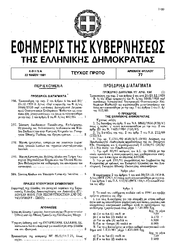 ΤΡΟΠΟΠΟΙΗΣΗ ΤΗΣ ΠΑΡ. 2 ΤΟΥ ΑΡΘΡΟΥ 4 ΤΟΥ ΑΠΟ 20/23.12.1959 Β. Δ/ΤΟΣ «ΠΕΡΙ ΕΦΑΡΜΟΓΗΣ ΤΟΥ Ν. Δ/ΤΟΣ 3868/1958 ΠΕΡΙ ΣΥΣΤΑΣΕΩΣ ΔΙΑΝΕΜΗΤΙΚΟΥ ΛΟΓΑΡΙΑΣΜΟΥ ΟΙΚΟΓΕΝΕΙΑΚΩΝ ΕΠΙΔΟΜΑΤΩΝ ΜΙΣΘΩΤΩΝ ΩΣ ΕΤΡΟΠΟΠΟΙΗΘΗ ΜΕΤΑΓΕΝΕΣΤΕΡΩΣ» ΚΑΙ ΟΠΩΣ ΑΝΤΙΚΑΤΑΣΤΑΘΗΚΕ ΜΕ ΤΗΝ ΠΑΡ. 1 ΤΟΥ ΑΡΘΡΟΥ 1 ΤΟΥ Π. Δ/ΤΟΣ 412/85.