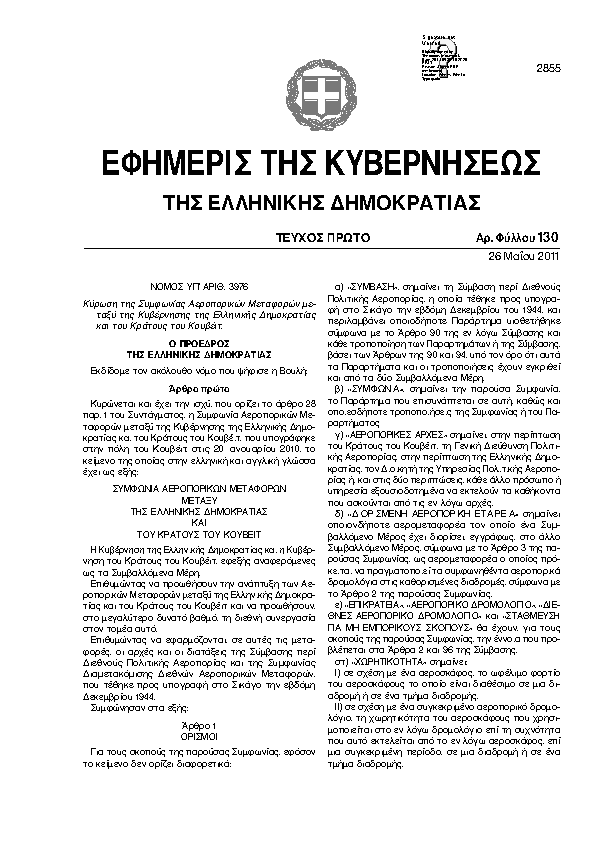 ΚΥΡΩΣΗ ΤΗΣ ΣΥΜΦΩΝΙΑΣ ΑΕΡΟΠΟΡΙΚΩΝ ΜΕΤΑΦΟΡΩΝ ΜΕΤΑΞΥ ΤΗΣ ΚΥΒΕΡΝΗΣΗΣ ΤΗΣ ΕΛΛΗΝΙΚΗΣ ΔΗΜΟΚΡΑΤΙΑΣ ΚΑΙ ΤΗΣ ΚΥΒΕΡΝΗΣΗΣ ΤΗΣ ΣΟΣΙΑΛΙΣΤΙΚΗΣ ΔΗΜΟΚΡΑΤΙΑΣ ΤΟΥ ΒΙΕΤΝΑΜ.