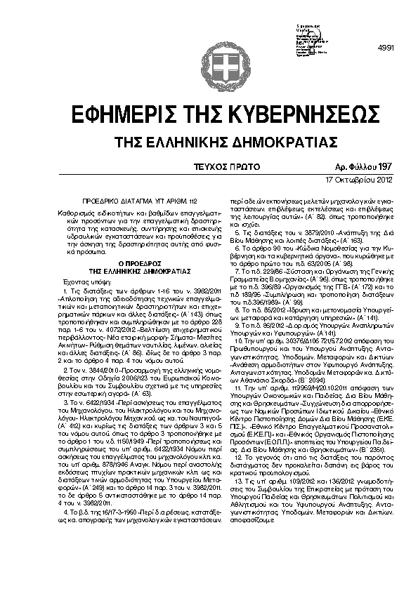 10. ΦΕΚ 197/A, 2012 http://www.et.gr/