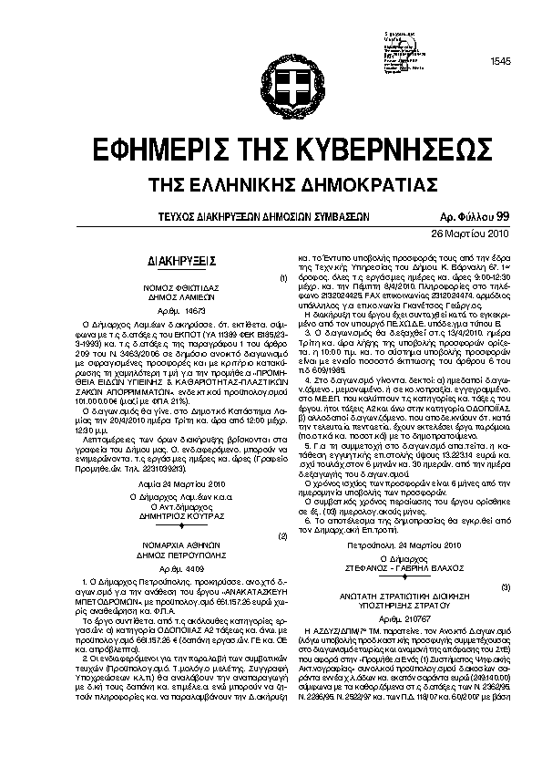 Αναζήτηση στα ΦΕΚ για:  Τεχνικό Πρόγραμμα