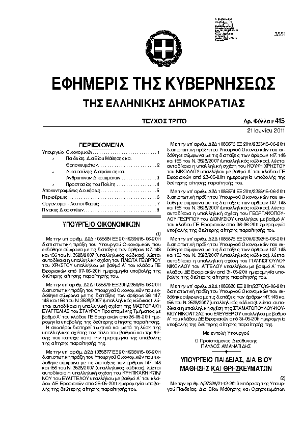 Αναζήτηση στα ΦΕΚ για:  Τεχνικό Πρόγραμμα