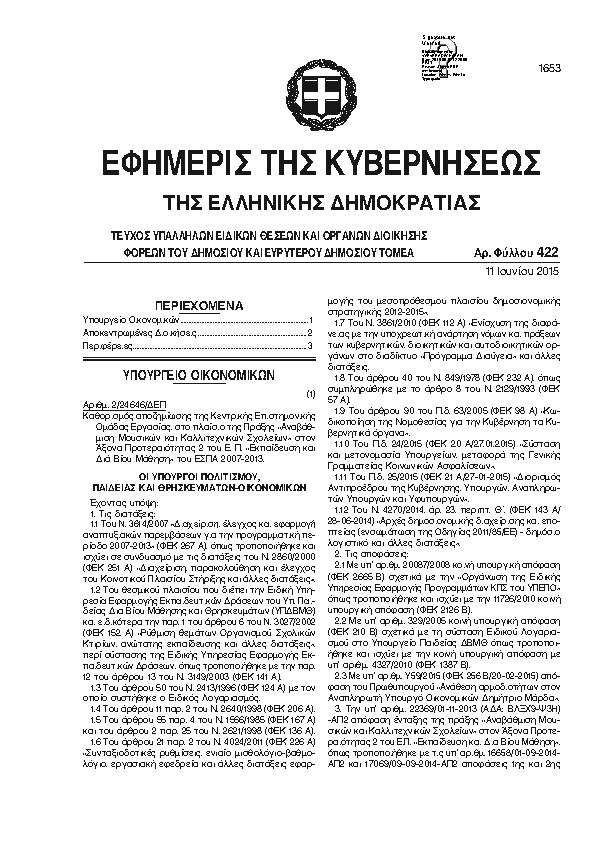 Αναζήτηση στα ΦΕΚ για:  Τεχνικό Πρόγραμμα