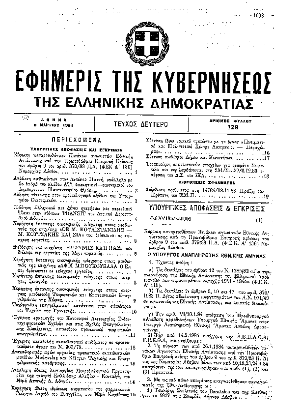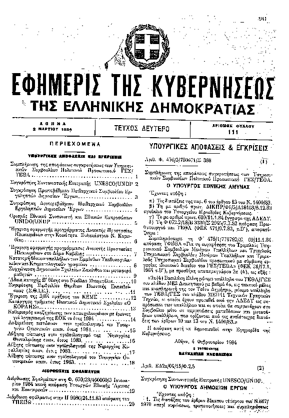 Αναζήτηση στα ΦΕΚ για:  Τεχνικό Πρόγραμμα