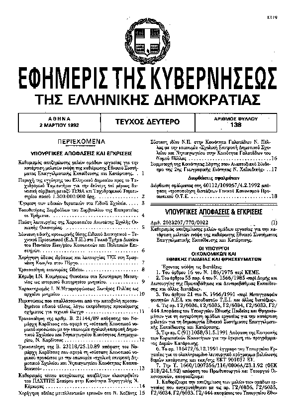 Αναζήτηση στα ΦΕΚ για:  Τεχνικό Πρόγραμμα