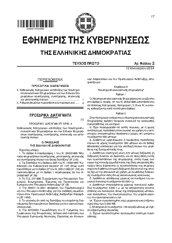 ΚΑΘΟΡΙΣΜΟΣ ΚΑΤΗΓΟΡΙΩΝ ΚΑΤΑΤΑΞΗΣ ΤΩΝ ΝΑΥΠΗΓΟΕΠΙΣΚΕΥΑΣΤΙΚΩΝ ΕΠΙΧΕΙΡΗΣΕΩΝ ΚΑΙ ΤΩΝ ΕΙΔΙΚΩΝ ΕΠΙΧΕΙΡΗΣΕΩΝ ΝΑΥΠΗΓΗΣΗΣ, ΣΥΝΤΗΡΗΣΗΣ, ΕΠΙΣΚΕΥΗΣ ΚΑΙ ΜΕΤΑΤΡΟΠΗΣ ΠΛΟΙΩΝ.
