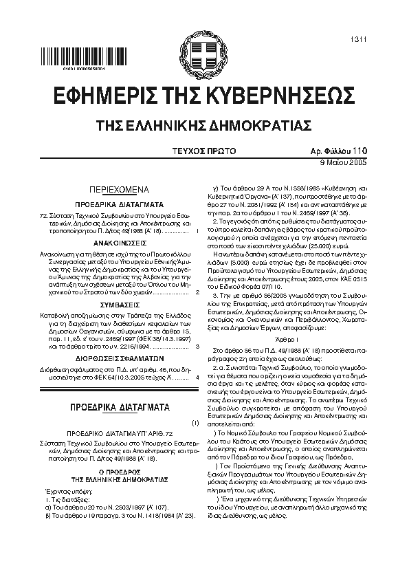 9. ΦΕΚ 110/A, 2005 http://www.et.gr/