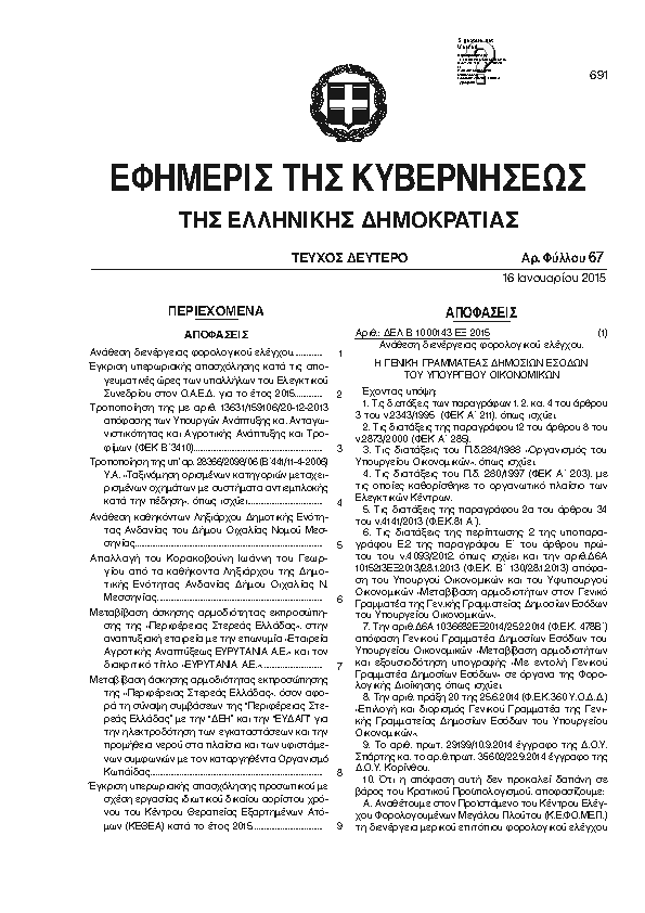 Αναζήτηση στα ΦΕΚ για:  Τεχνικό