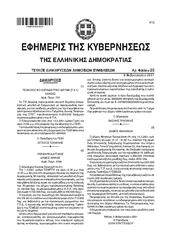 Αναζήτηση στα ΦΕΚ για:  Τεχνικό