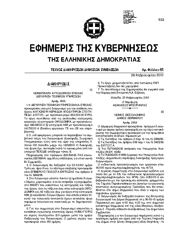Αναζήτηση στα ΦΕΚ για:  Τεχνικό