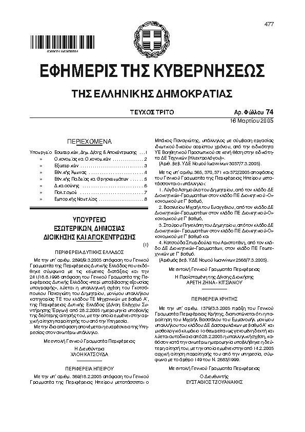 Αναζήτηση στα ΦΕΚ για:  Τεχνικό